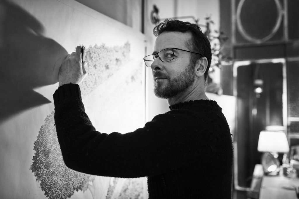 ALFREDO GHIERRA nace en Montevideo en 1968, cursa estudios de arquitectura y arte en la Facultad de Arquitectura de Montevideo y en la Escuela Nacional de Bellas Artes respectivamente, entre los años 1985-1990. Previamente estudia lenguajes audiovisuales realizando un curso de cine para niños y adolescentes en la Cinemateca uruguaya. Trabaja fundamentalmente la técnica del dibujo con grafo y tinta pero también la fotografía, el arte digital, la animación, el ensamblaje de objetos y la pintura al óleo. A partir del año 1994 realiza exposiciones personales y colectivas dentro y fuera del Uruguay: Palais de Glace (Buenos Aires, Argentina), Centro Cultural São Paulo (San Pablo, Brasil), Sala Renato Russo (Brasilia, Brasil), Astry Gallery (Sofía, Bulgaria), Assoziacione Culturale Spiazzi (Venecia, Italia), Casa de América (Madrid, España), Instituto Cervantes (Berlín, Alemania).Participa de numerosos concursos obteniendo varios premios y menciones (VI y VII Bienales de Salto, Salón de Dibujo 1998 del BROU, VII Bienal de arte Sacro de Buenos Aires, Salones Municipales y Nacionales, etc.) Ha sido Director de Arte para el medio audiovisual durante más de 15 años. En 2011 Ghierra fue el director de arte de los festejos del bicentenario del proceso independentista del Uruguay, realizando intervenciones artísticas a escala urbana en las principales avenidas y plazas de la ciudad de Montevideo. Su personaje Ghierra Intendente, creado en 2010, es una performance artística en clave política y apartidaria, donde un extenso grupo de artistas, arquitectos y diseñadores, se articulan para pensar y proyectar la ciudad. Es un proyecto curatorial de largo alcance, cuyas últimas presentaciones, tanto en el Centro Cultural de España de Montevideo (2015) como en el Instituto Cervantes de la ciudad de Berlín, Alemania (2016) le ha valido todo tipo de reconocimientos y apoyos. Dirigió el Museo de las Migraciones de Montevideo durante su primer año de actividades en su nueva ubicación dentro del complejo Muralla Abierta.